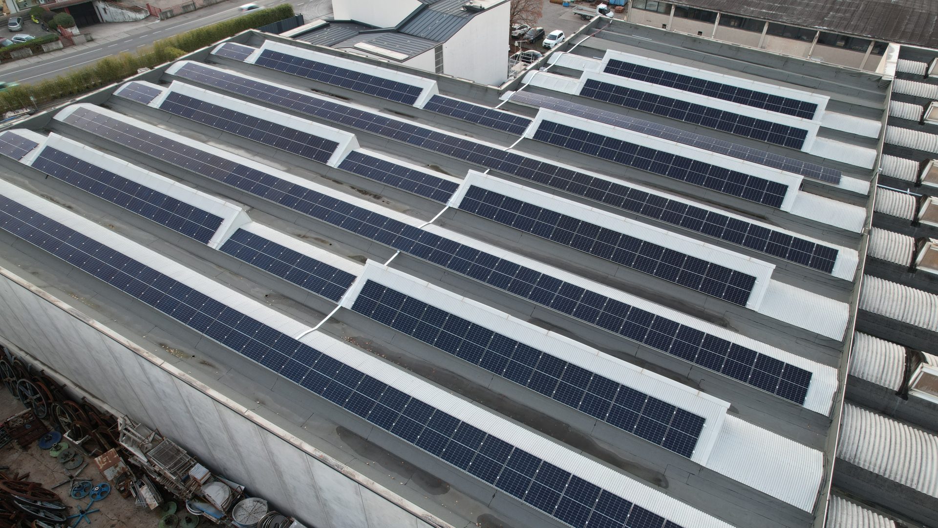 Impianto fotovoltaico industriale da 184,5 kWp con 450 moduli fotovoltaici da 410 W.