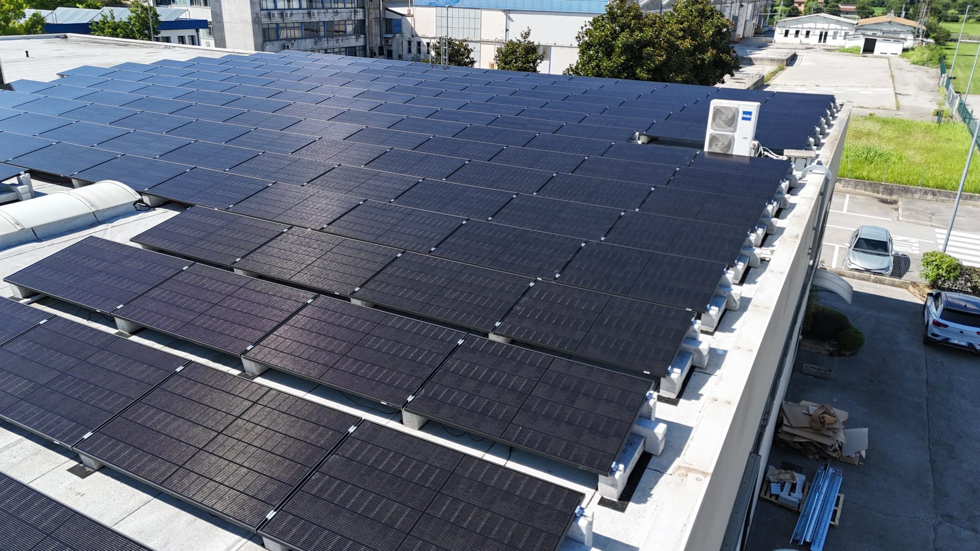 Impianto fotovoltaico industriale da 80,36 kWp con 196 moduli fotovoltaici da 410 W.