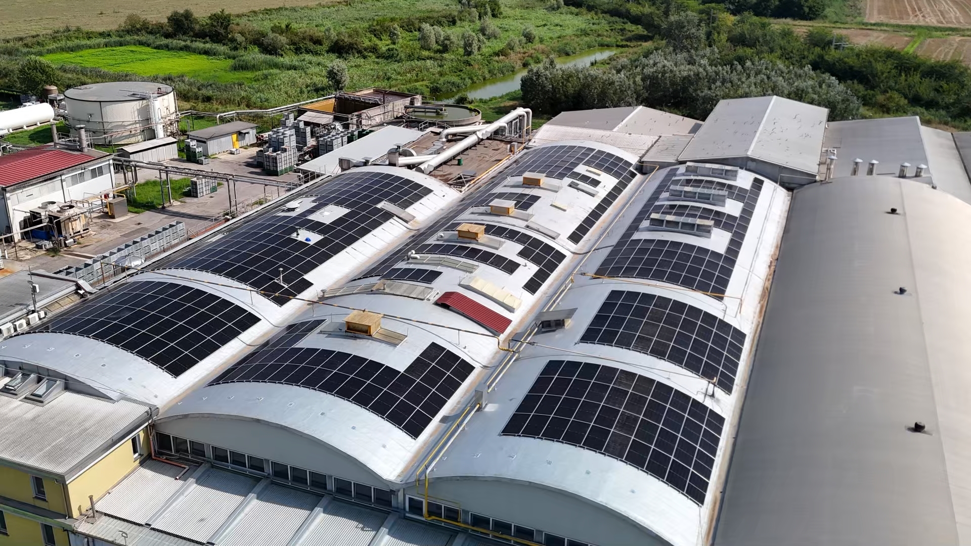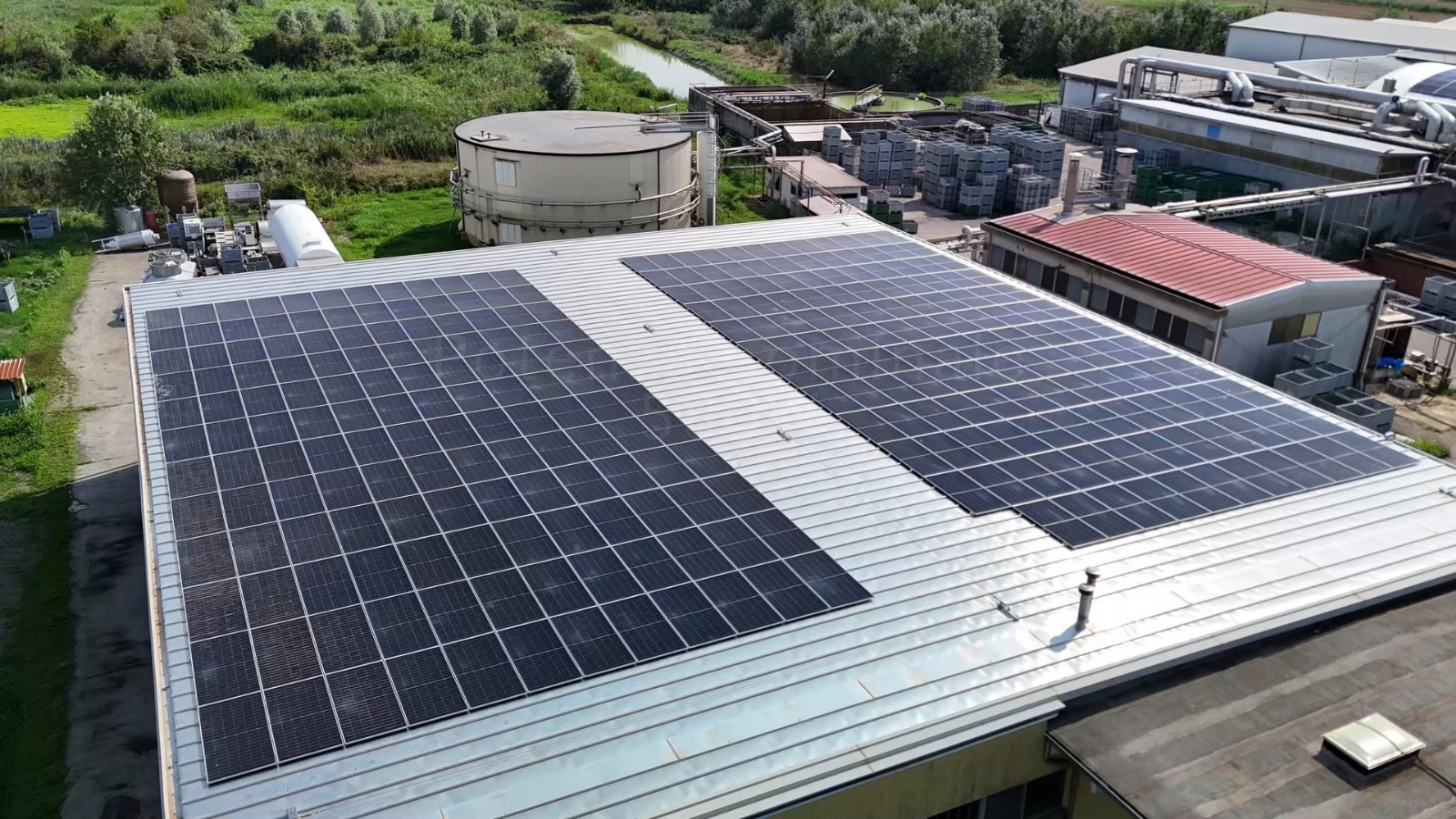 Impianto fotovoltaico industriale da 488,36 kWp con 842 moduli fotovoltaici da 580 W.